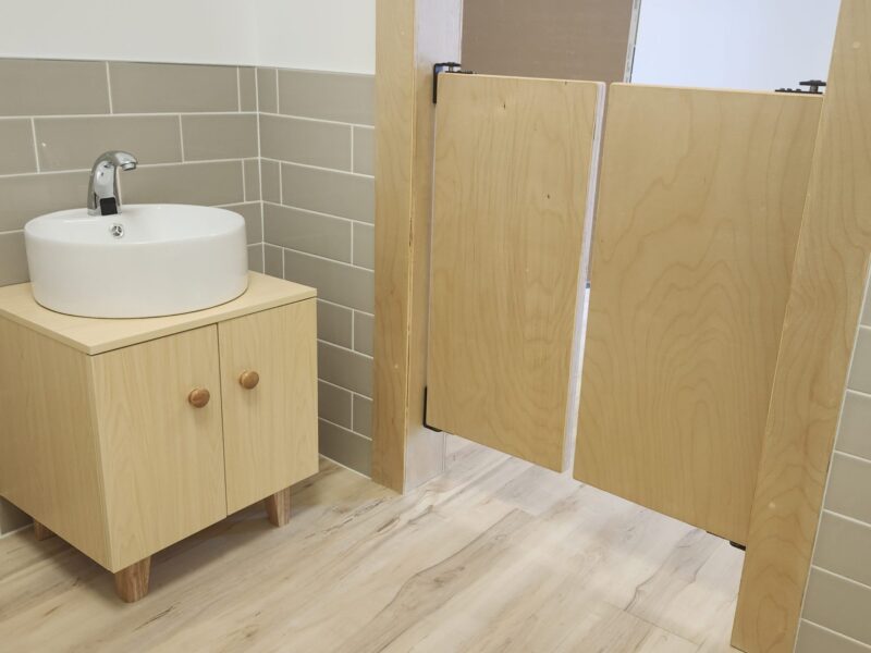 We also developed custom toilets, sinks, and cabinetry scaled perfectly for children, combining practicality with playful design. The use of all-wood finishes and our team’s attention to fine craftsmanship bring warmth and cohesion to the space.